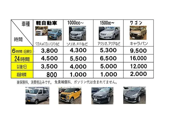 当店のレンタカーは、新車だけではなく、整備士の目で選び、自社で念入りに整備した中古車も多く取り扱っているので、ご利用いただきやすい価格帯になっております。